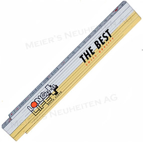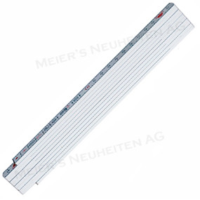 Schweizer Präzision: Kratzfest, wetterbeständig und waschbar, Bruchsicher und sehr langlebig, Fiberglas verstärktes Polyamid, Vertieft geprägte Millimeter-Teilung, Rote Dezimeterzahlen, 90°-Rastpunkt aller Gelenke.