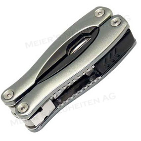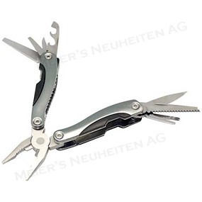 Dieses Multiwerkzeug verfügt unter anderem über eine Zange, Feile, Säge, ein Messer, zwei verschiedene Schraubenzieher und einen Flaschenöffner. Angeliefert wird der praktische Helfer in einem Nylonetui.