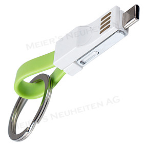 3 in 1 Ladekabel mit kombiniertem iPhone-Android Anschluss inklusive USB-C Anschluss mit einem Schlüsselring. Das Kabel hält mittels Magnetverschluss. Mit dem Ladekabel können Mobiltelephones, Tablets usw. verbunden und geladen werden!