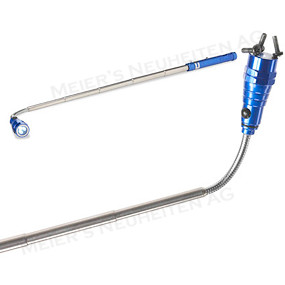Teleskop Taschenlampe mit 3 hellen weissen LED-Birnen, lässt sich stufenlos bis zu 56.5cm ausfahren. Mit einem flexiblem magnetischem Kopf 360 Grad anpassbar inkl. Clip.