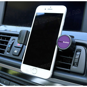 Universeller Smartphone-Halter mit Lüftungshalterung mit einer 360° Rotationsmöglichkeit und eine seitliche verstellbare Öffnung.