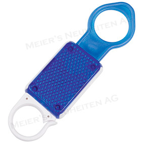 Flaschenhalter mit Reflektor inklusive 3 LED Leuchten mit 2 unterschiedlichen Lichteinstellungen. Einfach mit dem Karabiner-Haken anhängen.