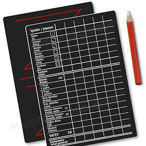 Beschreibung: Jass- und Yatzyetui für doppelten Spielspass mit beidseitiger Jasstafel